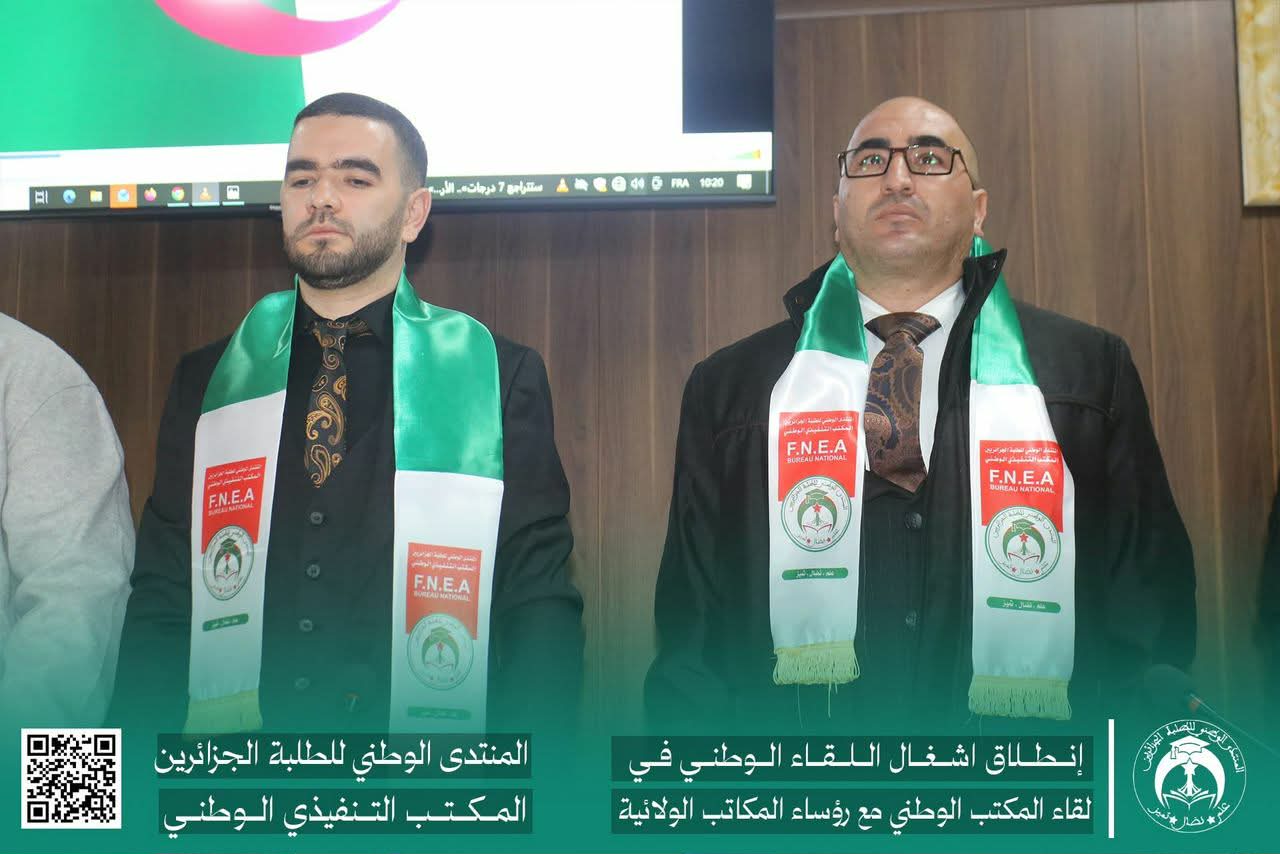في إطار تعزيز العمل الطلابي المنظم وترسيخ ثقافة التشاور والتنسيق بين مختلف الهياكل، احتضنت المدينة الجامعية فعاليات اللقاء الوطني الذي جمع القيادة الوطنية للمنتدى الوطني للطلبة الجزائريين برؤساء المكاتب الولائية، في محطة تنظيمية هامة تعكس روح المسؤولية والانخراط الفعلي في خدمة الطالب والدفاع عن انشغالاته.